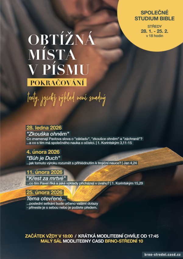 Vítán je každý, kdo chce přemýšlet, ptát se a hledat – budeme společně zkoumat biblický text i různé výklady.